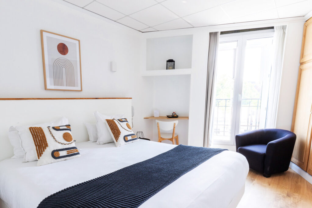 Une chambre double supérieure, plus spacieuse, accueille 2 personnes dans un cadre élégant et raffiné. Idéale pour un week-end romantique ou un séjour tout en confort, elle séduit par son espace généreux et son ambiance cosy propice à la détente.