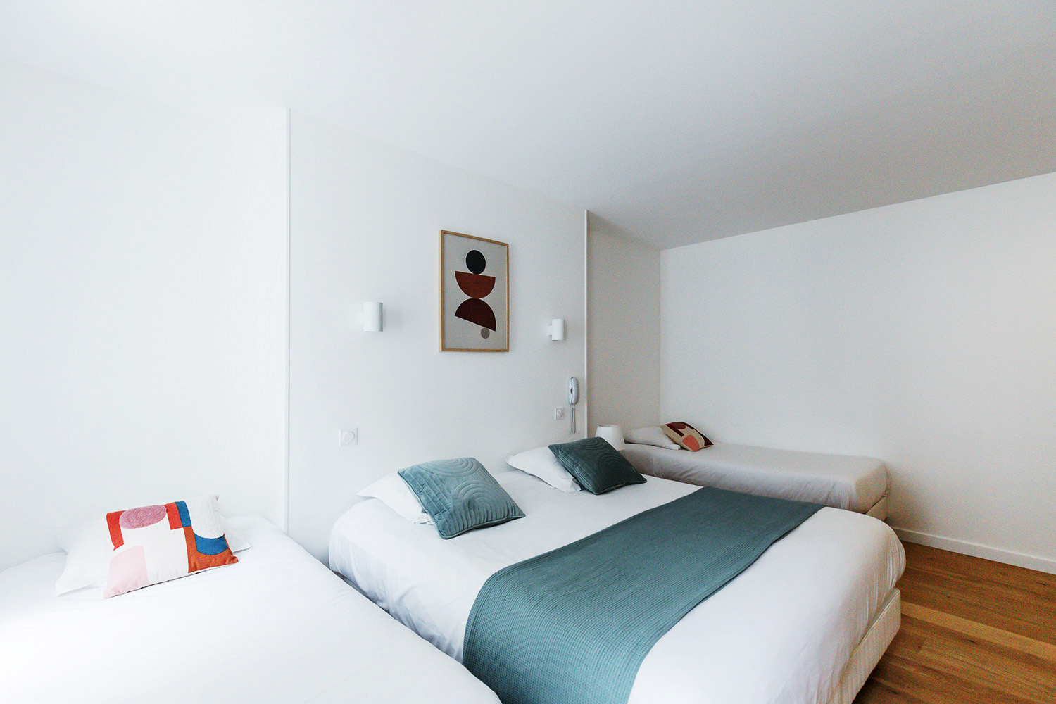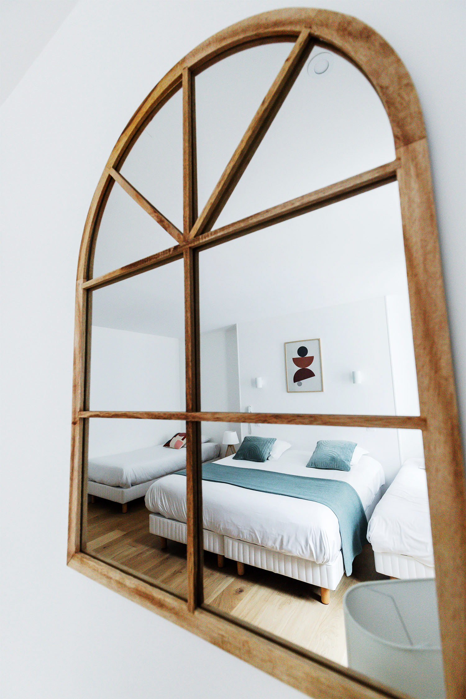 Une chambre quadruple, spacieuse et adaptée aux familles, peut accueillir jusqu’à 4 personnes. Elle offre un espace optimisé et une atmosphère chaleureuse, parfaite pour se retrouver après une journée riche en découvertes entre patrimoine, gastronomie et Champagne.